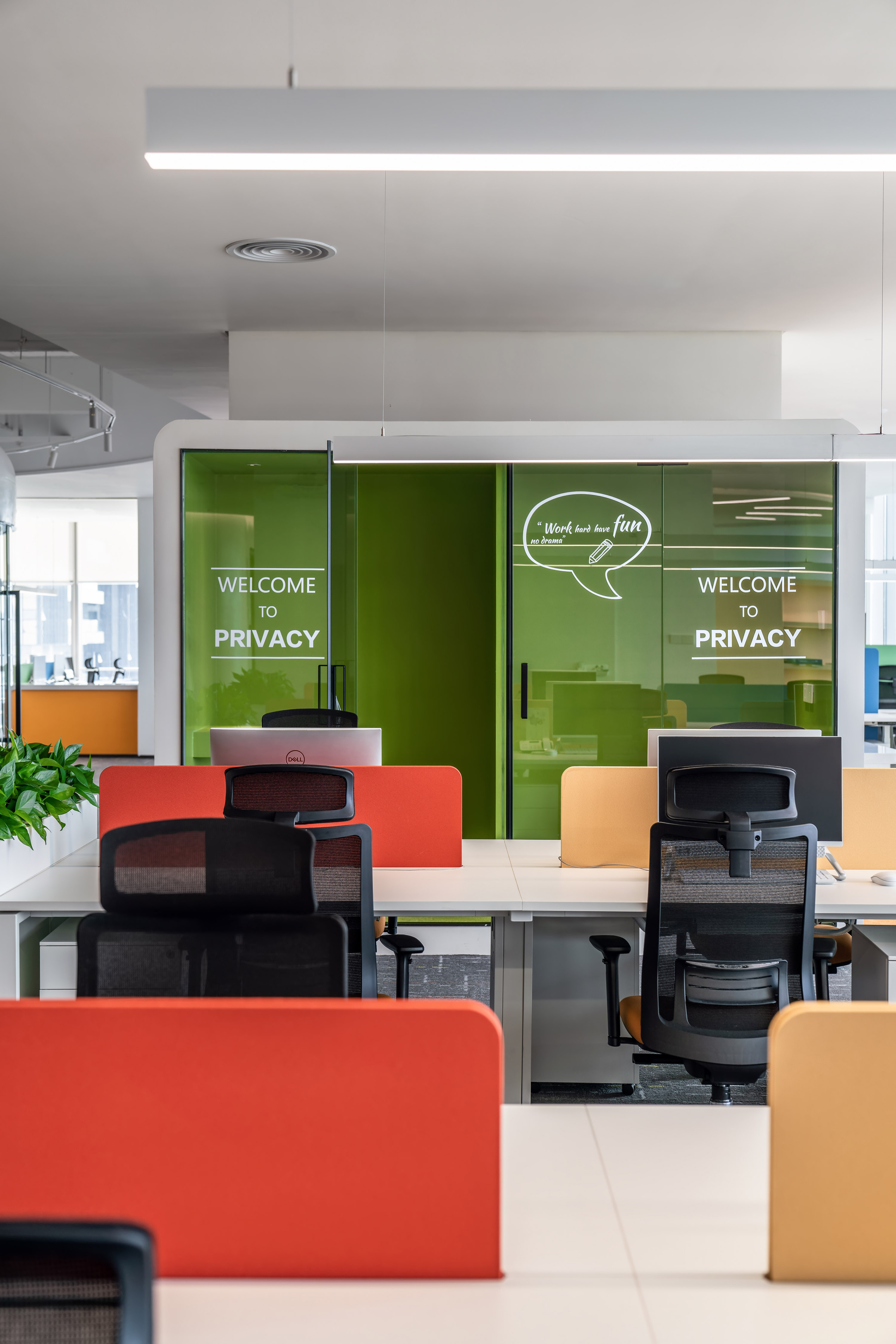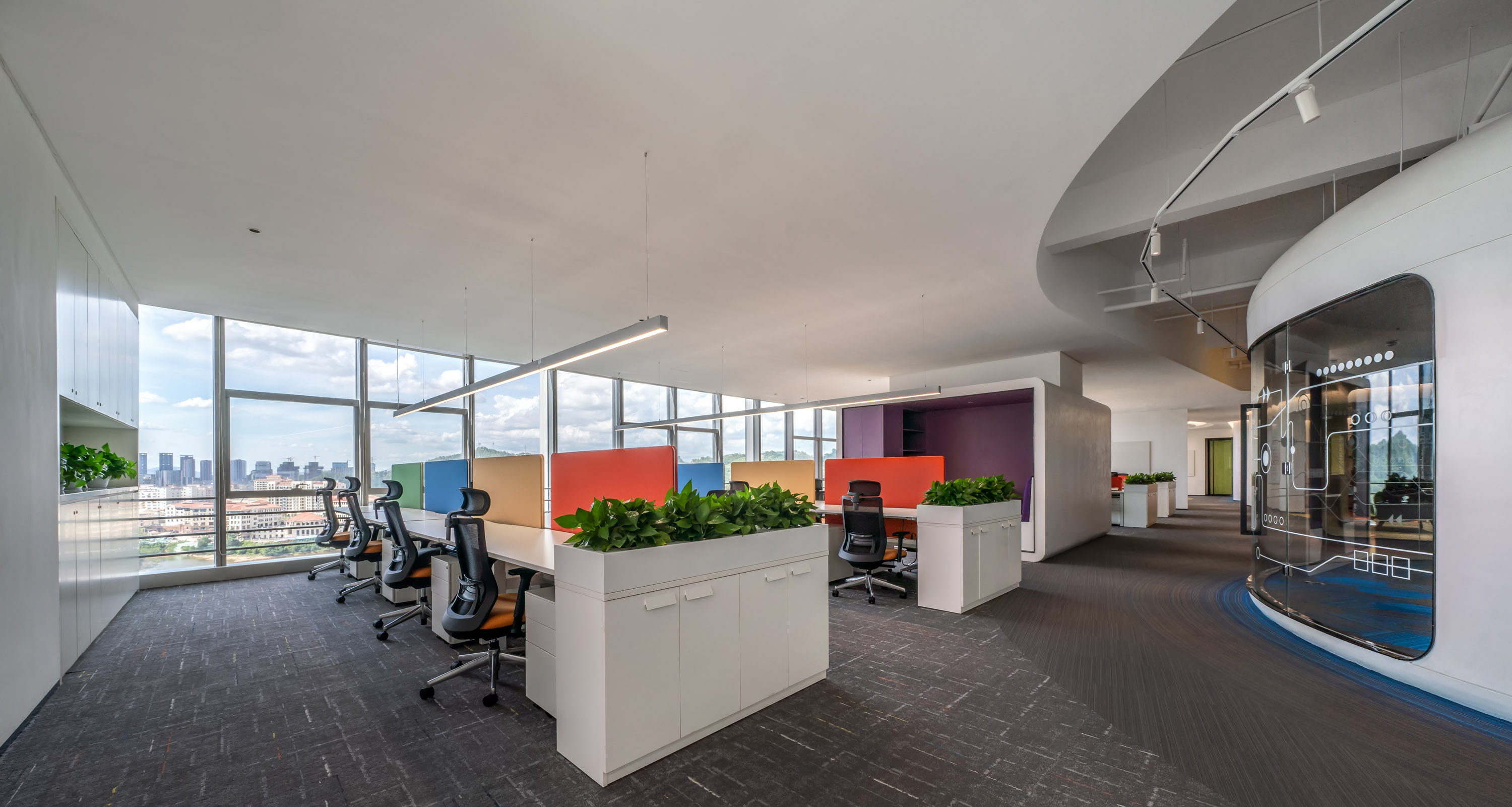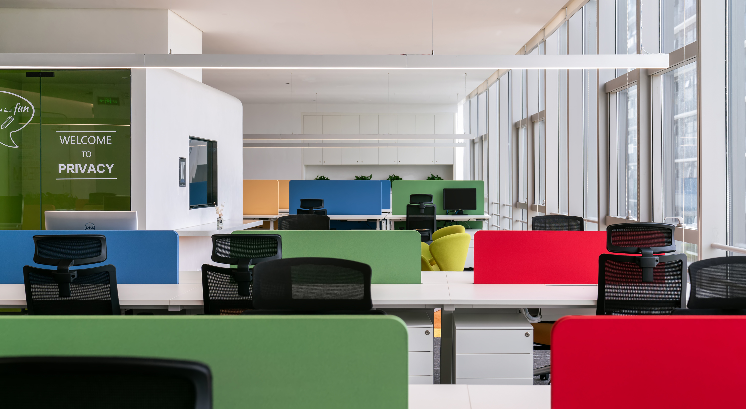 最好的都要留給伙伴們,對伙伴們的貼心融入到辦公室的每個細節(jié)。最好的景觀、最優(yōu)的采光、通風透氣、冷氣口的出風角度設計,都用心至極,把伙伴當家人一樣。包括窗簾的選擇,為了不讓伙伴們在封閉的空間工作,我們對窗簾的嚴選要求既遮陽又透光,視野開闊,讓成員在工作之余可以與窗外風景互動,在緊張的工作中得到舒壓減壓的目的。