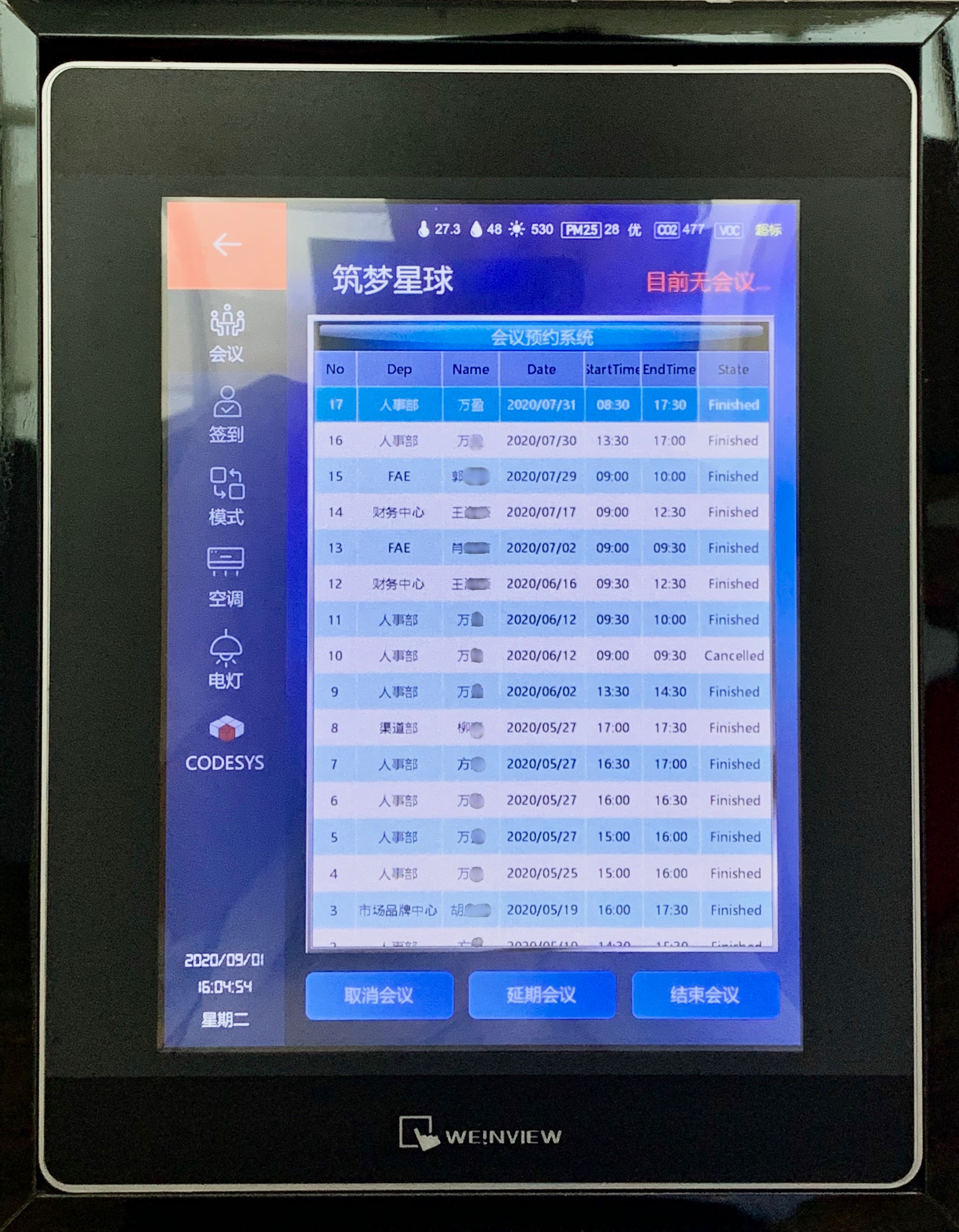 cMT人機集中控制電燈,空調(diào),窗簾,會議預訂,音樂播放等,并能監(jiān)視溫度、濕度、空氣質(zhì)量、用電總量等數(shù)據(jù)。