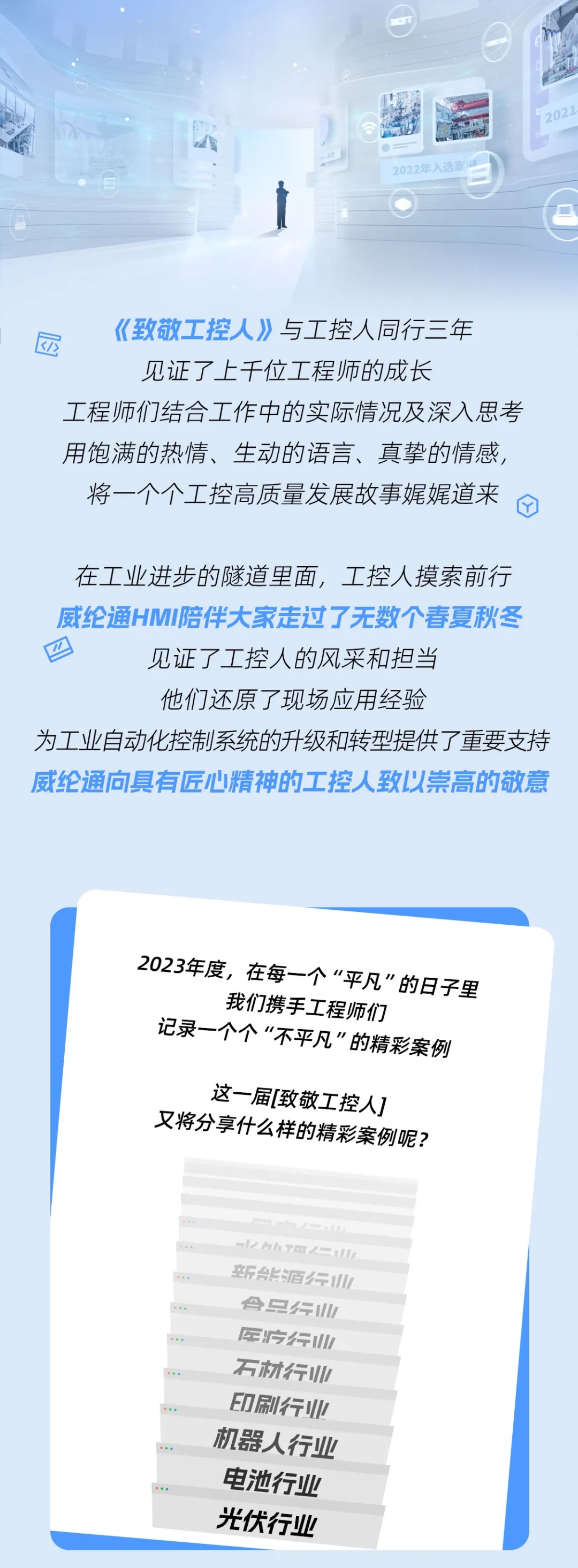 很多東西是需要時(shí)間才能建立的,用心打好基礎(chǔ),一切該來(lái)的都會(huì)來(lái)。祝愿“致敬工控人”越辦越好,祝愿威綸通發(fā)展壯大,更上一層樓。